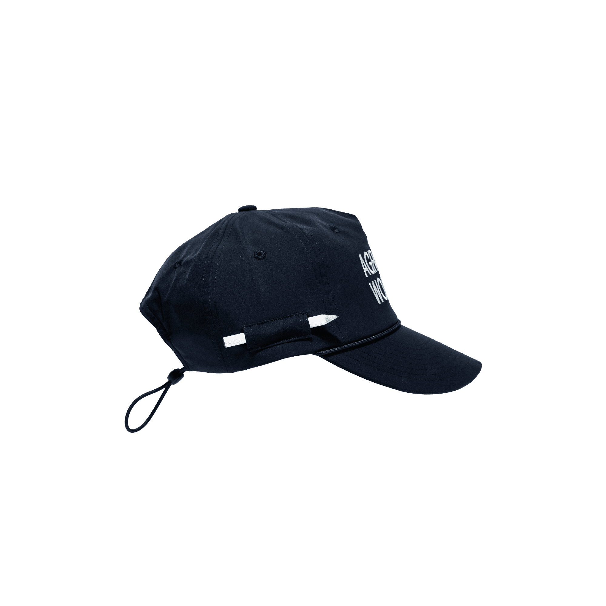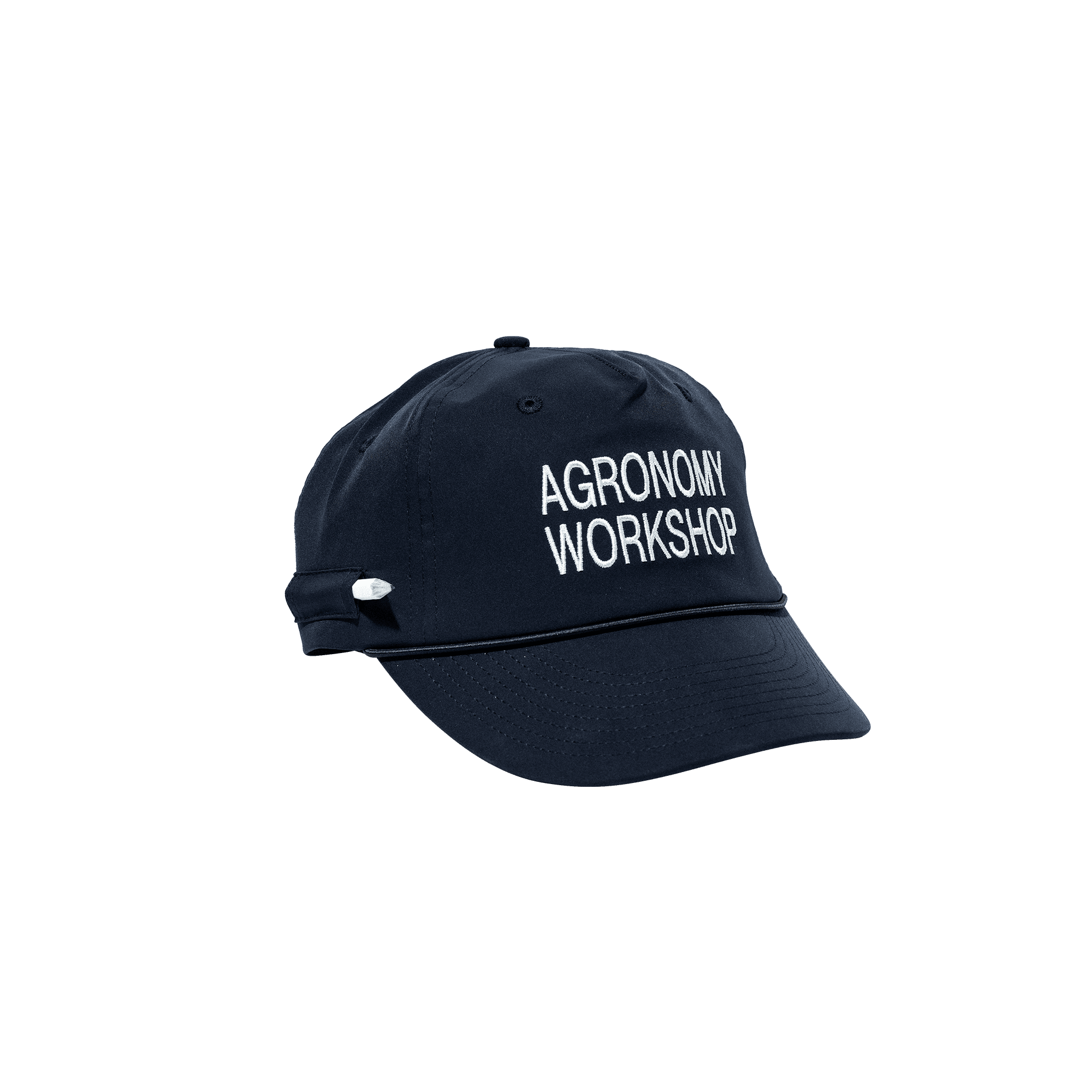 5-panel rope hat made from 100% recycled nylon. Quick-adjust rope closure. Matching rope along the front of the base panel. Golf pencil holder. Pre-curved brim. Comes with an Agronomy Workshop pencil.