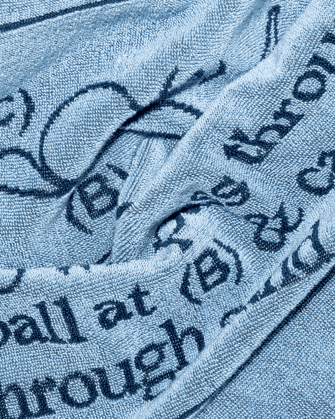 Golf towel made from 100% woven terry cloth cotton. Extra absorbent. Won’t improve your lies.